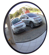 Espelho de segurança convexo com suporte, para uso interno (borda borracha) e externo (borda alumínio), ângulo 90º e 180ºC