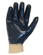 Confeccionada em malha de algodão, palma, dedos e dorso com revestimento nitrilo na cor azul, punho em algodão. Proteção das mãos do usuário contra riscos mecânicos (riscos de contato) e contra riscos químicos. Ex: Detergentes, sabões, amoníaco, solventes orgânicos e similares).